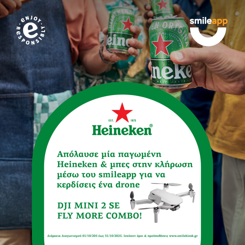 (στο εξής, «η Διοργανώτρια»), που εδρεύει στο Περιστέρι Αττικής, οδός Αρριανού, αριθμ. 3, Α.Φ.Μ. 800841823, Δ.Ο.Υ. Ε΄ Πειραιά διοργανώνει διαγωνισμό σε μηνιαία βάση με τίτλο «“Smileapp Διαγωνισμός Heineken» στο πλαίσιο του Προγράμματος Επιβράβευσης Smileapp για τα μέλη της, με σκοπό την προώθηση των προϊόντων της.